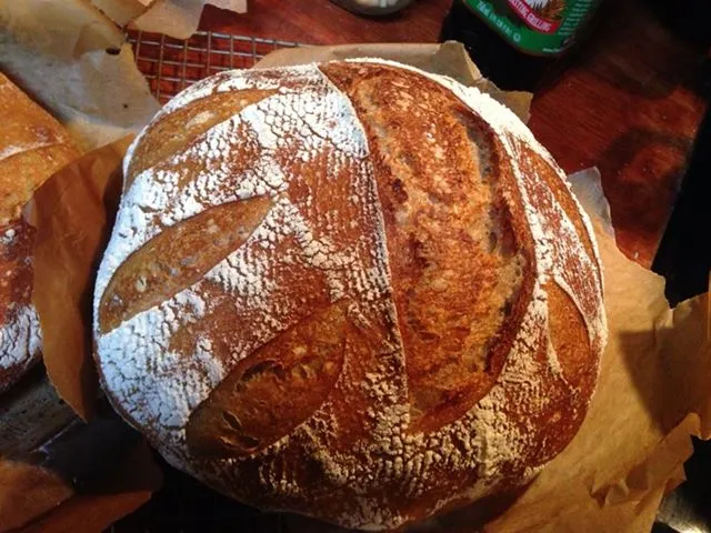 I have been playing with bread and baking for a little more than a decade; my gateway bread was a recipe for homemade soft pretzels (baking soda wash); I've since dabbled heavily with donuts, then commercially yeasted breads, croissants, and for the last 6 years I've mostly focused on wild yeasted breads from a starter "captured" in my kitchen. I made a year or two of disappointing loaves, but after buying the Tartine Bread Book, I've been exceedingly happy with the work the little yeast beasts can be coerced into doing. I make variations of the Basic Country Loaf about once a week (usually 30% WW, 90% hydration, 12 hour fridge ferment), but I've grown so fond of that basic recipe that I should probably push myself to try other techniques.