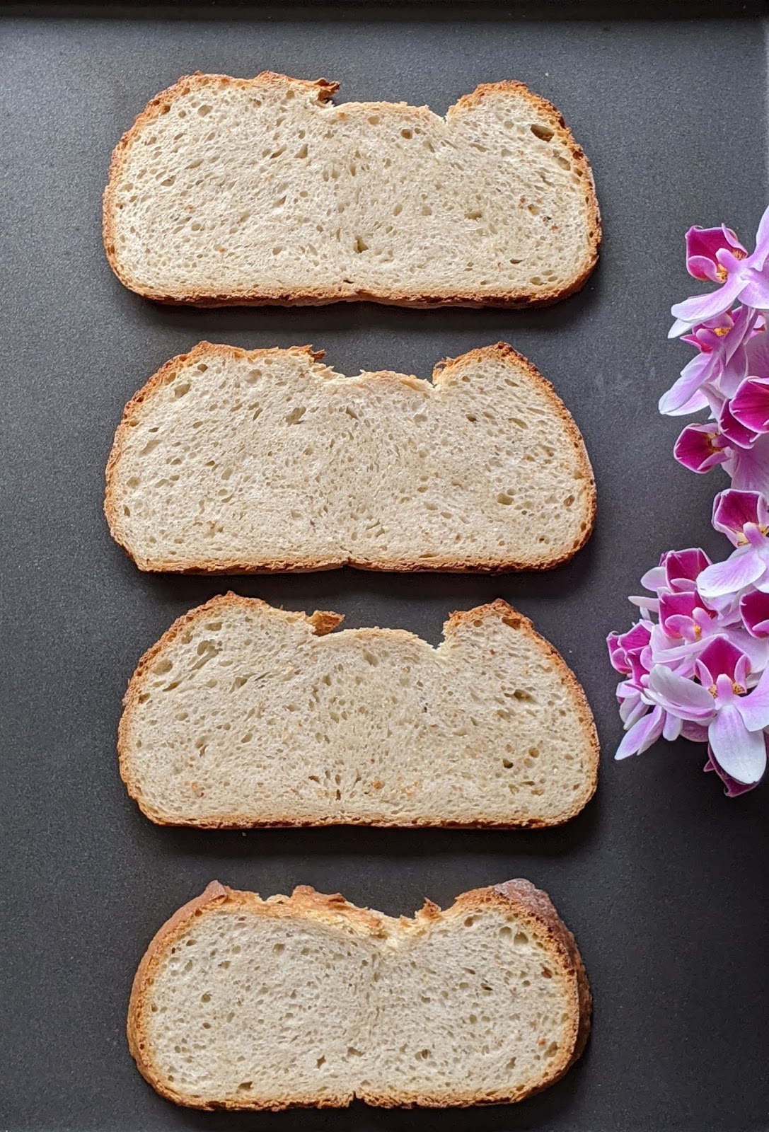 This loaf had a much stronger and long-lasting tangy aftertaste than the one made without pre-dough. One can easily create a sour loaf with CLAS by playing with the variables.