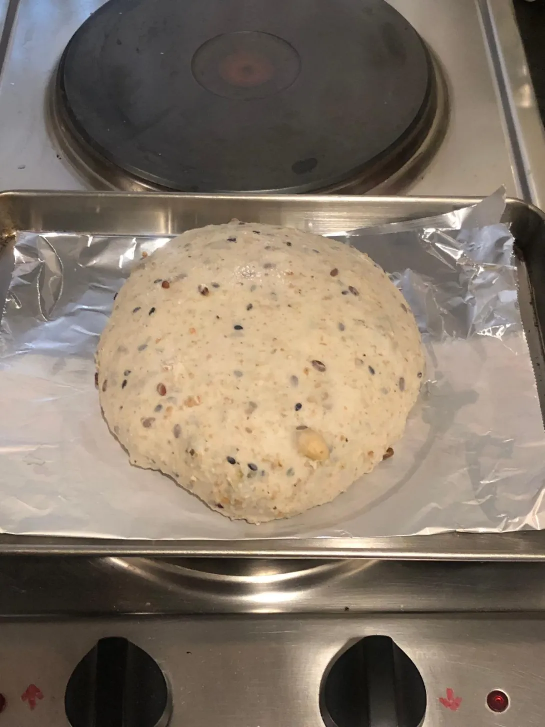 4. Any suggestion to prevent me from messing up the whole 300g flour loaf that I'll bake, maybe, tomorrow or the day after? My concern right now is that, I'm not sure if the 40% added seeds make my loaf bigger or not, or the added bulk is off set by the less rise the dough get from the seeds and oats. It feel like it is bigger to me right now. My issue is that I use a small toaster oven and 300g straight dough is as full as it can get that I got a spot burnt crust sometime due to the loaf rose up too close to the heating element.