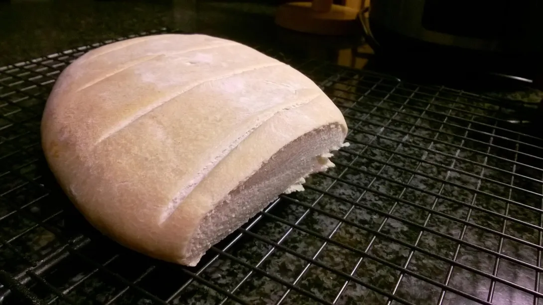 i followed a recipe, mix, knead, rise 2 hours. knock back rest 1 hour, shape, spray/flour, bake.