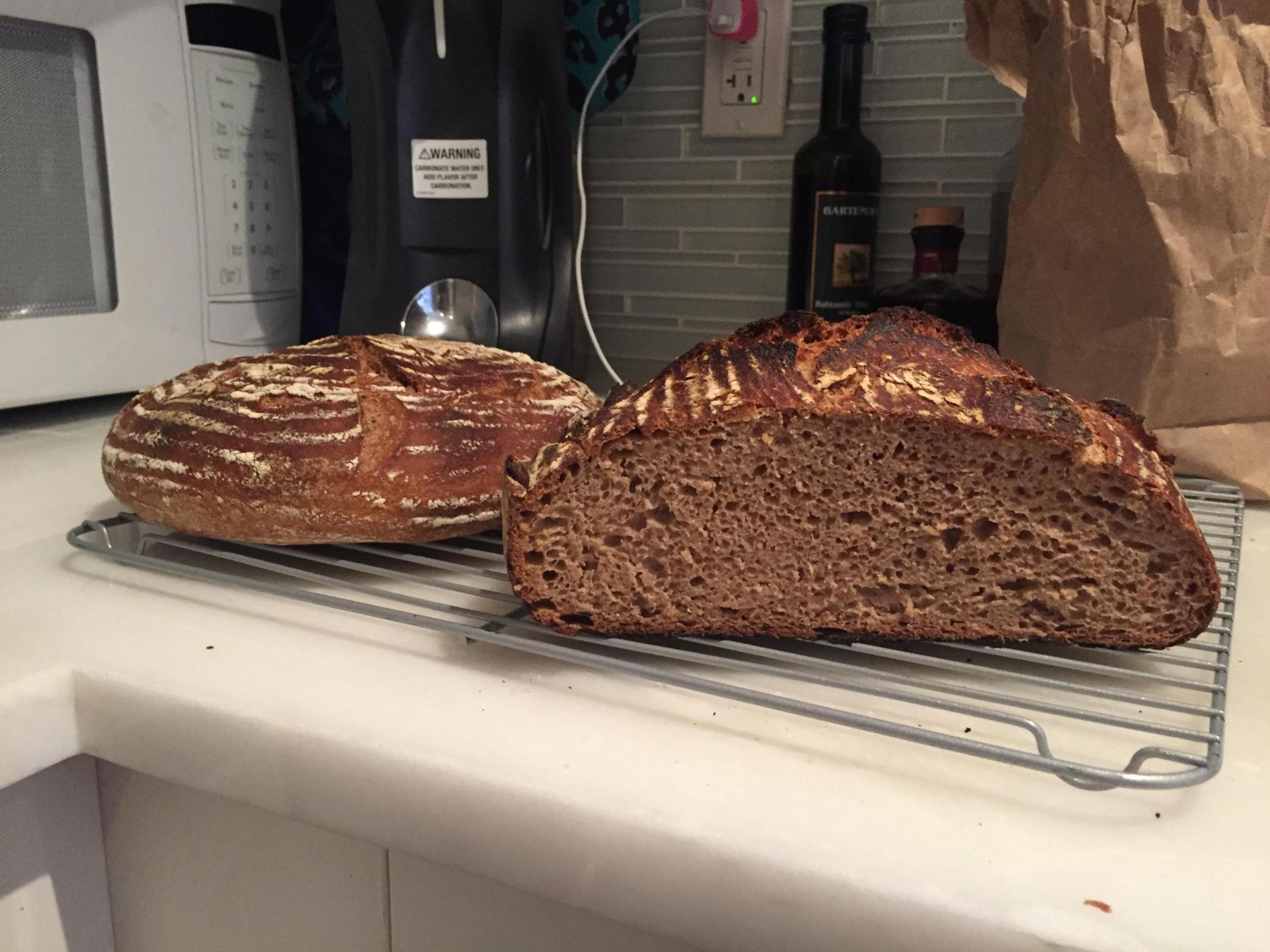 1. i ran out of whole wheat flour and so i made up the difference with dark rye flour. so mix was 67% Whole Wheat, 8% rye, 25% white. These measures include what i fed the levain