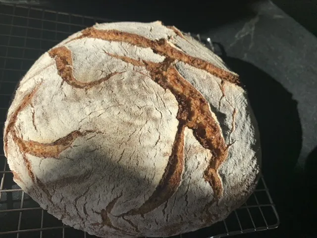 Gorgeous dough. Easy to work with in the KA had 5 min with the hook. Rose beautifully and baked off as I usually do in my antique roaster. Will post crumb later after it has cooled sufficiently. Fragrance is quite lovely and the natural openings show a lovely crumb so far.