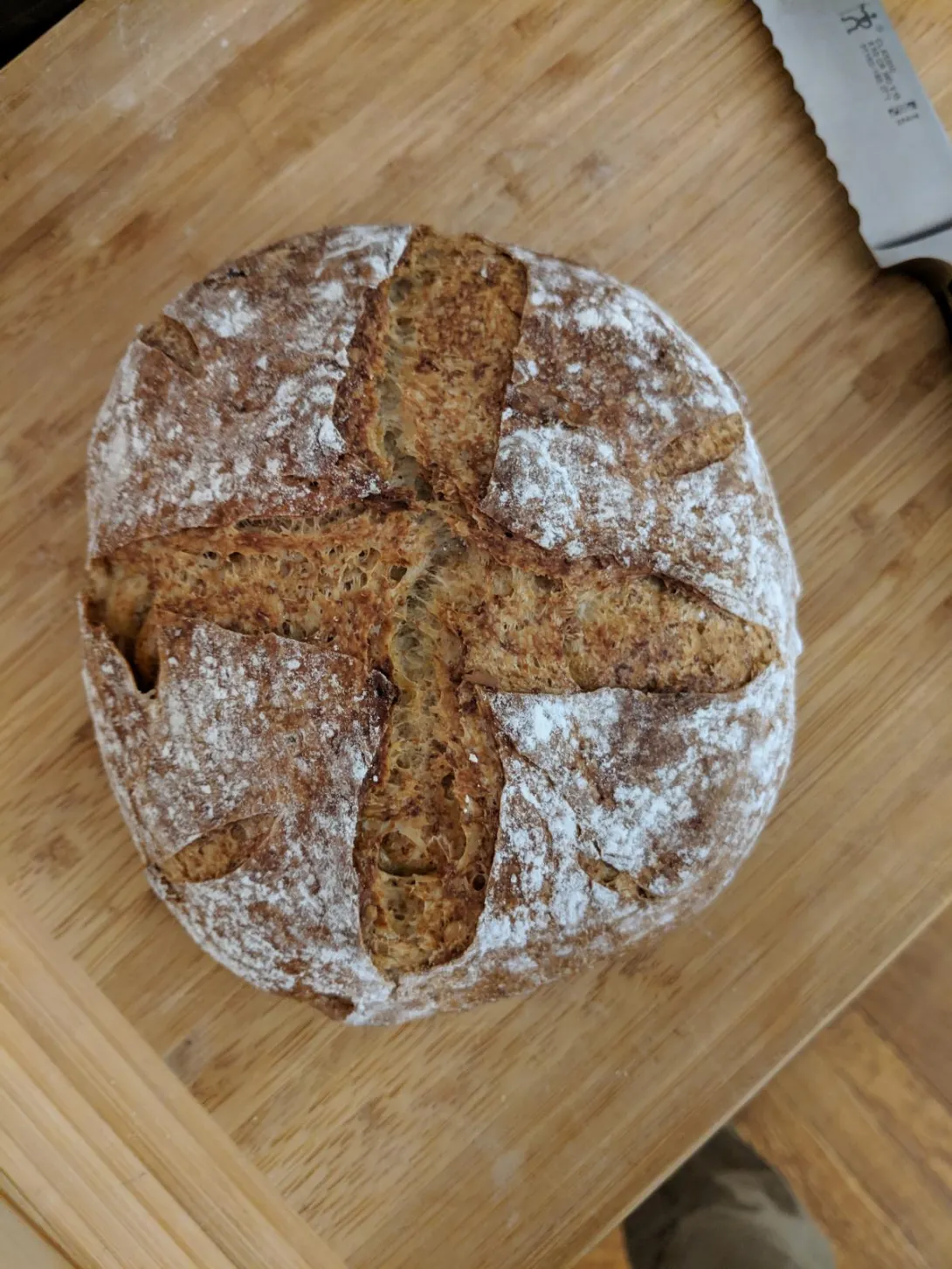 I recently took out Martin Philip's Breaking Bread from the library, and this is the first recipe I've tried from it. It's 50% whole wheat (home milled), and has oats, millet, and sunflower seeds. It was a tasty loaf. My short list of recipes to try next from the book are his boiled cider rye bread, beekeeper's pain de mie, and Irish levain. Has anybody tried anything from this book yet?