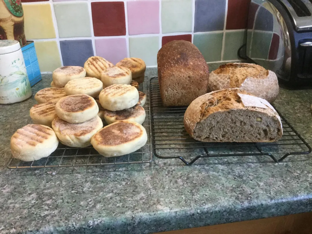 Multigrain, seeded bread - using up end of bag of wholemeal flour, hence 84g wholemeal, 75g dark rye, 300g white bead flour, with 3malt sunflower seed flour to make up to 800g, 400g 50% starter, 650g water. Autolysed for just under an hour, 20g salt added and dough developed. 150g mixed ‘seeds’ added towards end of slap and folds (cut malted rye grains, pumpkin, sunflower, sesame, linseed,poppy), then 3 sets of stretch and folds over next hour and a half, as dough seemed slacker than I was expected. In total, 4 hours of bulk at room temp (probably about 66-68 as heating not on initially).