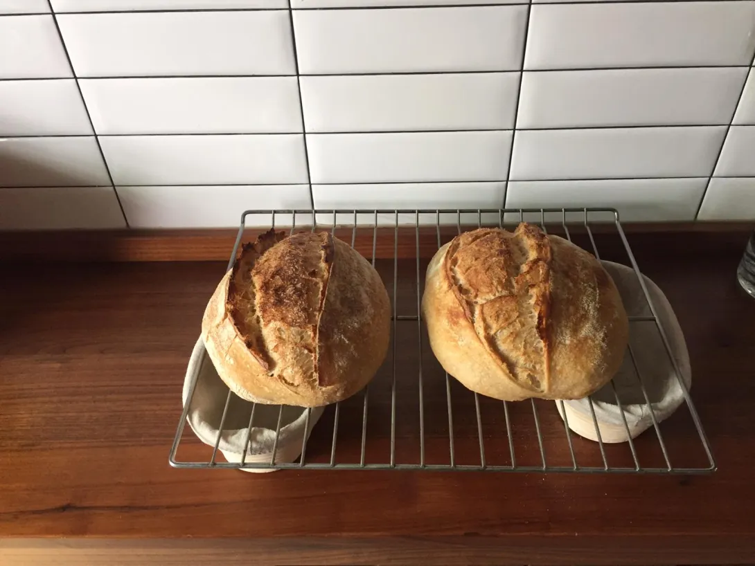 First I tried a 340g loaf (300g + the ~40g in the starter) It’s a cute loaf (image above) but you can fit more in there.