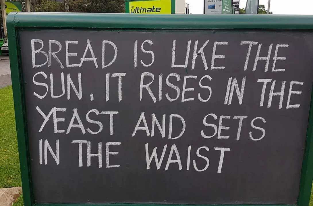 My Swedish Grandfather used to say that a little modified; Bread rises in the yeast and sets in the vest.