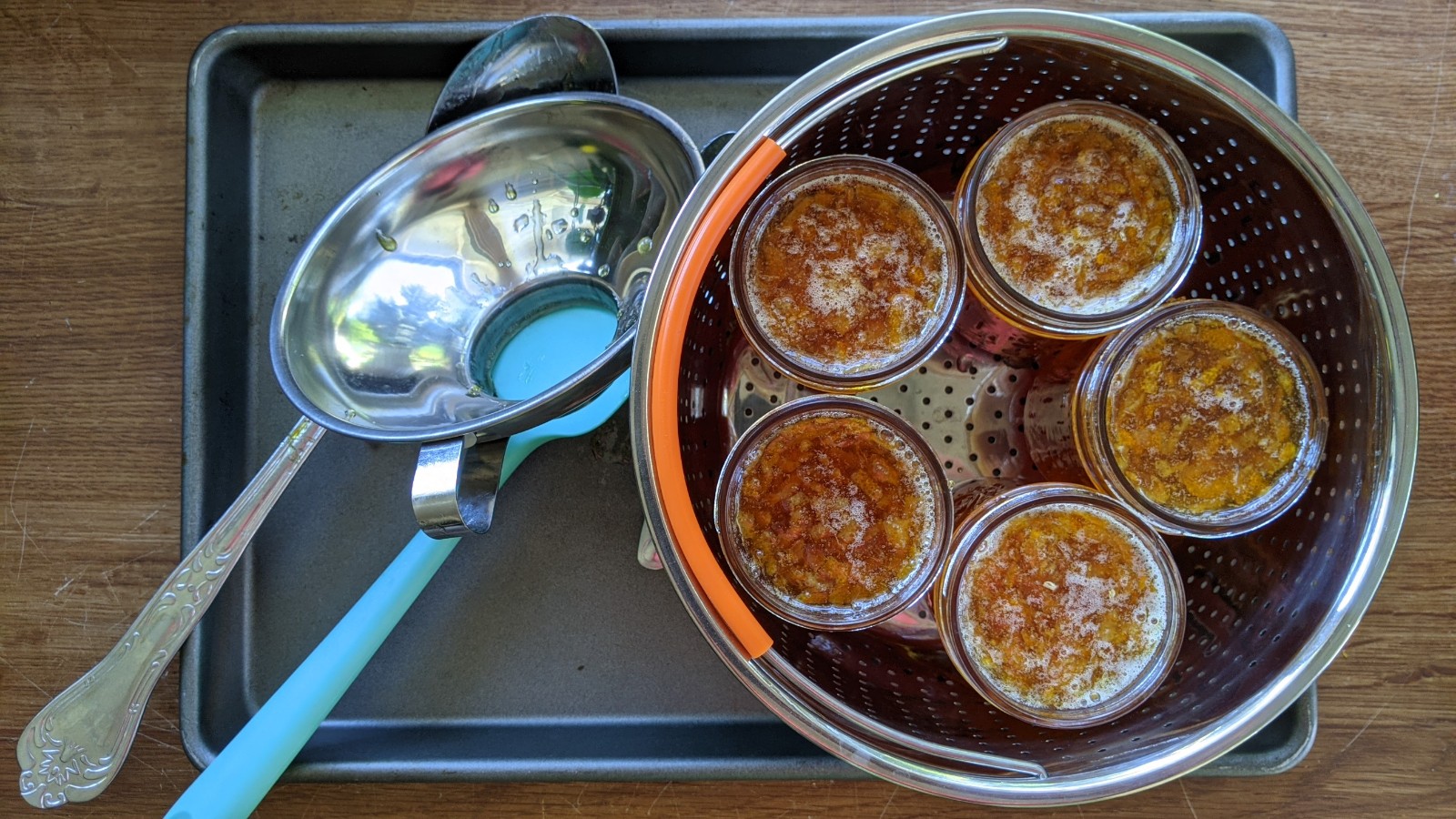 Load the marmalade in canning jars and process them using your preferred canning method. I found that ~900g of citrus at a 1:1 ratio of sugar yield ~ 5x250ml jars, which fit perfectly in my Instant Pot basket.