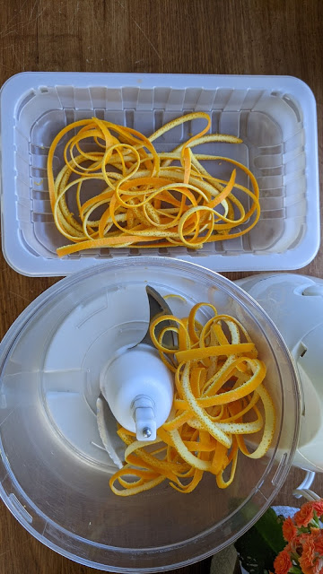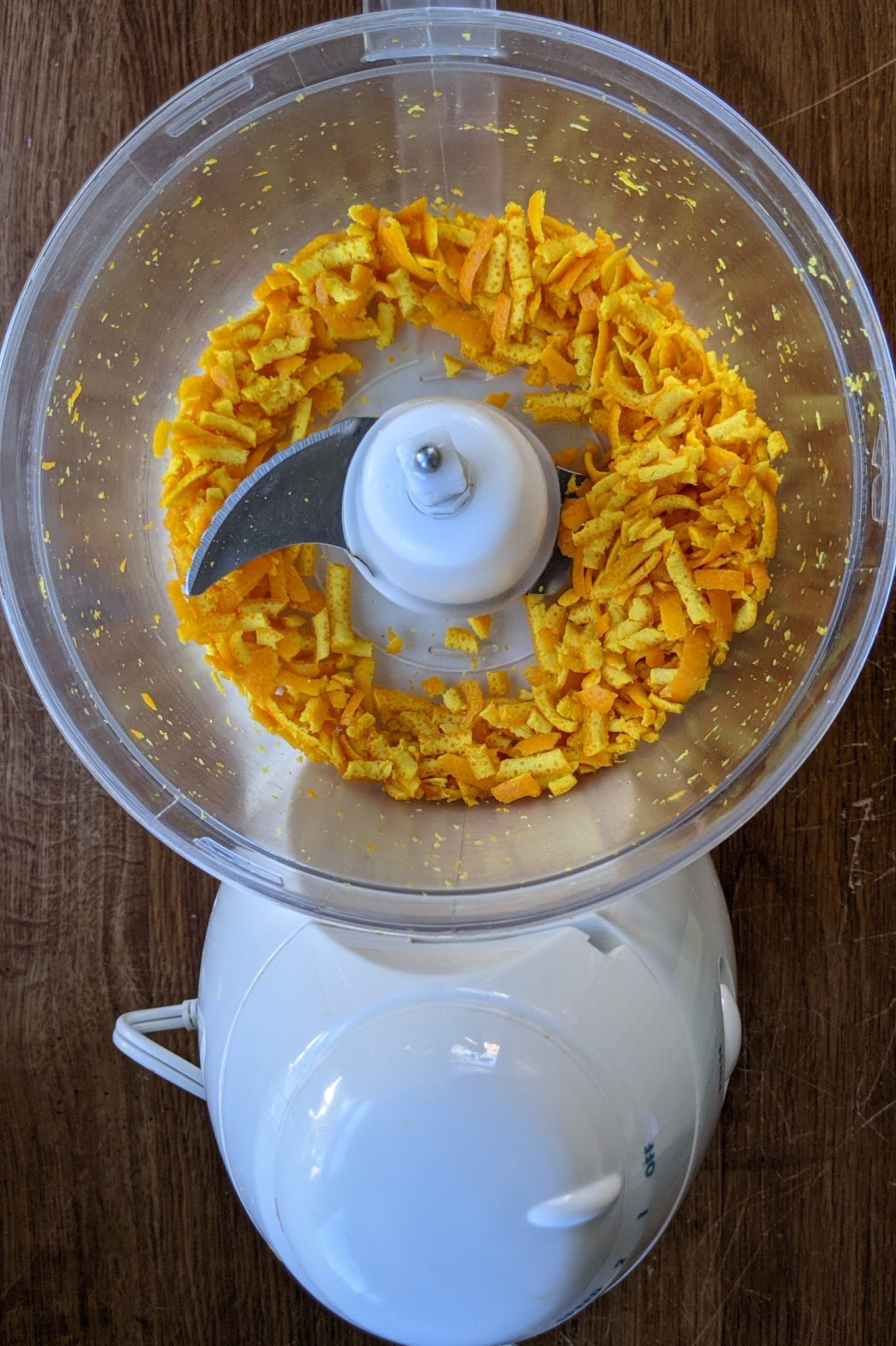 Roughly cut the citrus strands with scissors, then pulse them in a food processor.