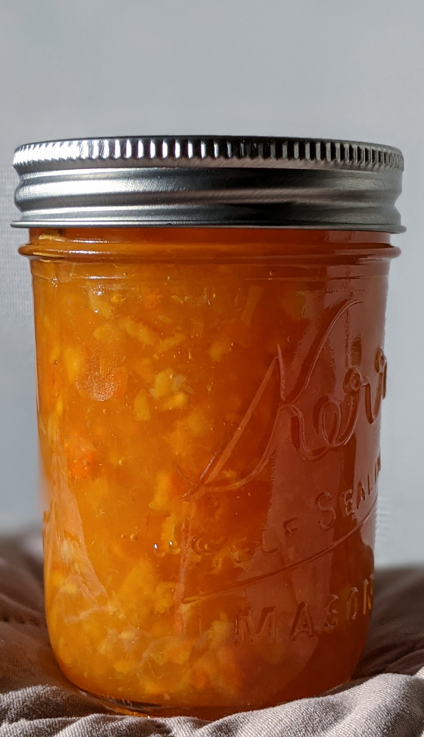 This is the ? mandarin marmalade that I made with whole fruit. So far, I've found that mandarin is the perfect citrus that yields the least bitter marmalade without extra pith processing.