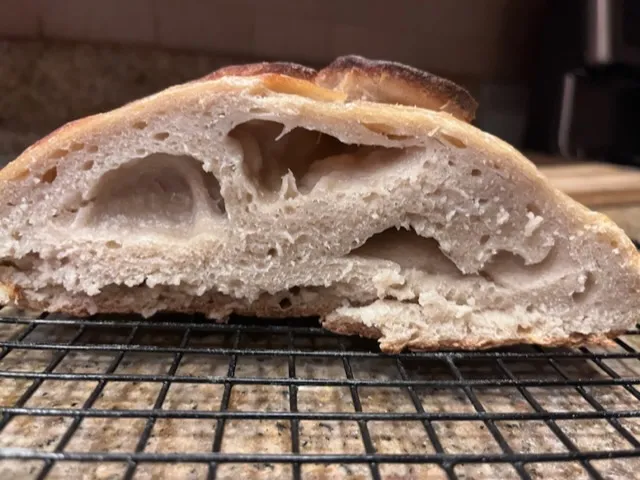 I think between the pre-ferment and the bulk, following the clock and not the dough, it has come out very under fermented.