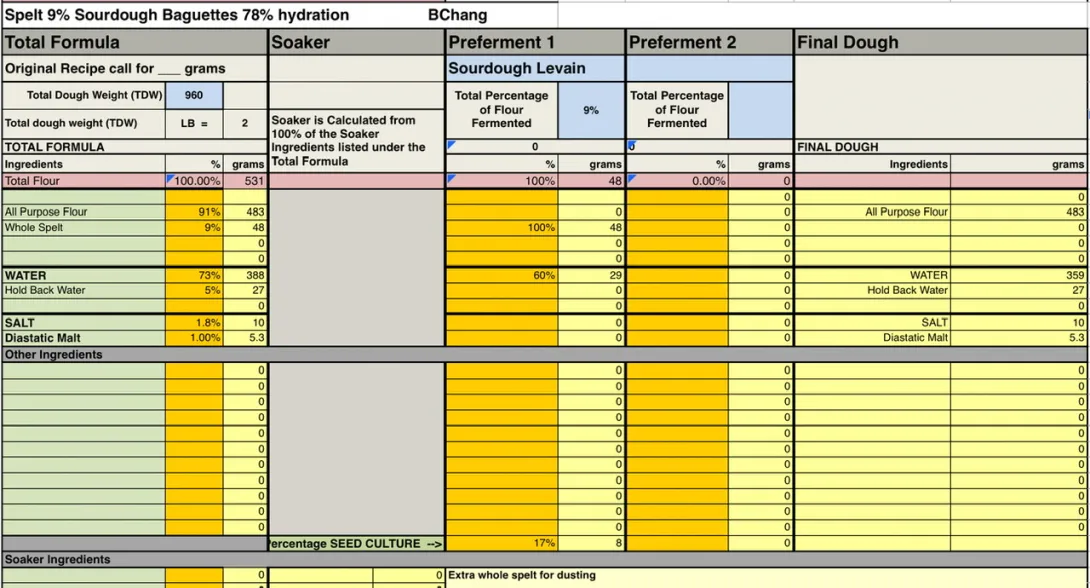 I believe most of my lean dough formulas use only about 9% prefermented flour otherwise I do find they ferment too quickly. With baguettes especially, I don’t want them fermenting too quickly since they take a fair bit of time to divide, pre-shape, rest, shape and score, they could easily over ferment.