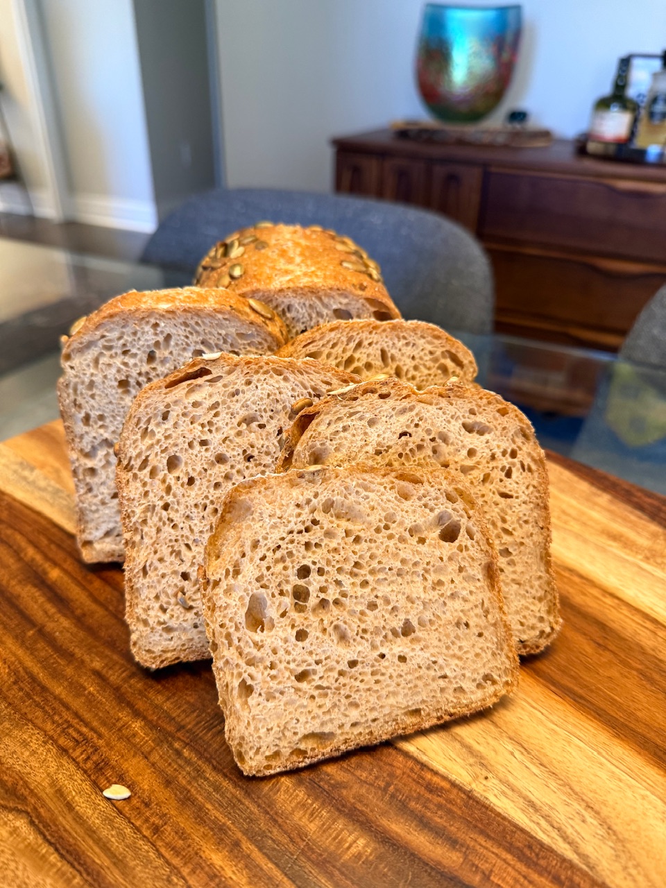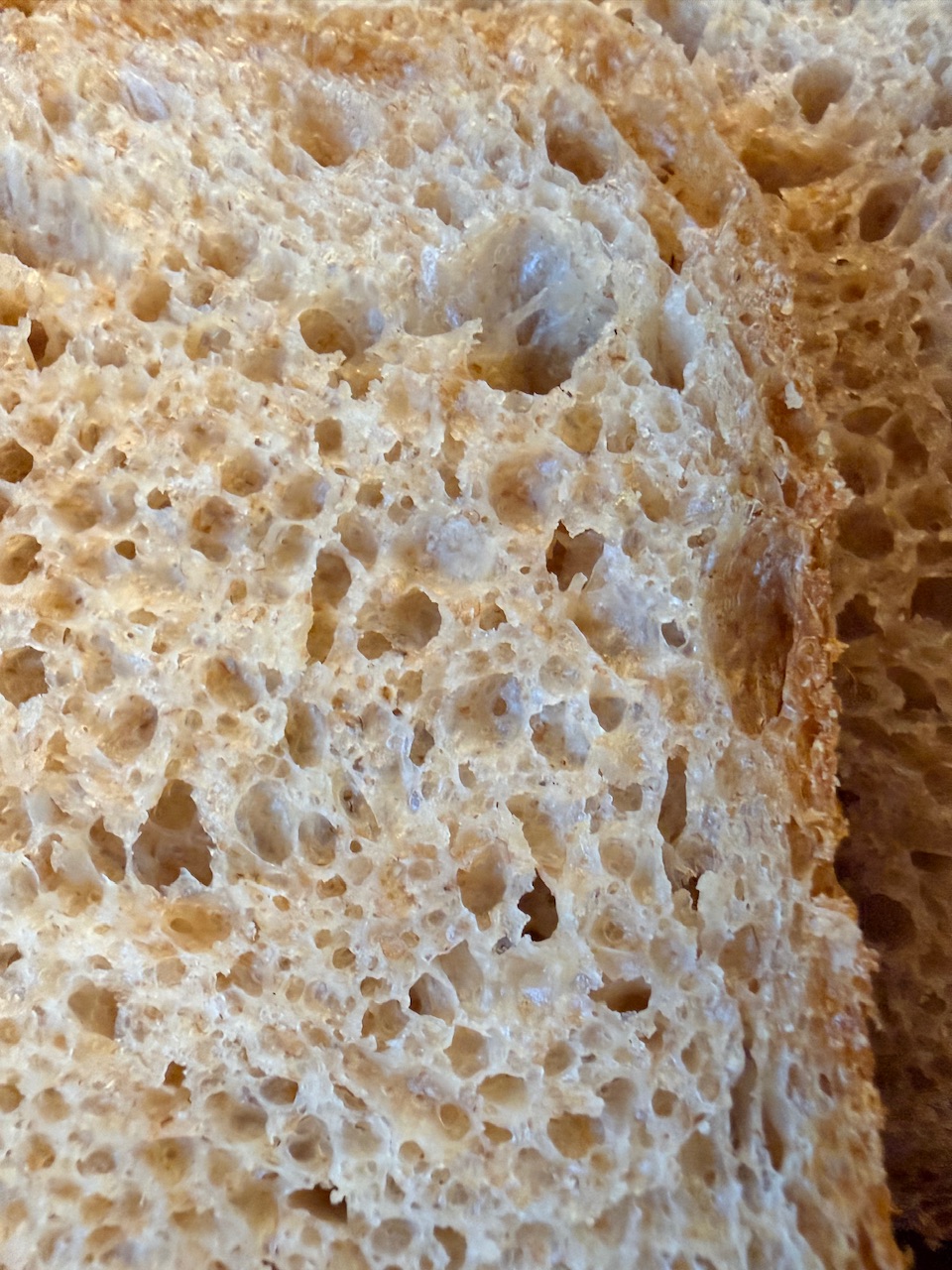 Here’s the crumb. I’m happy with the texture and flavour. I’m certainly not mad at the crumb which is nicely open. The pumpkin isn’t distinct, but there is more complexity to the flavour than I would usually expect with a 50% WW SD loaf like this.