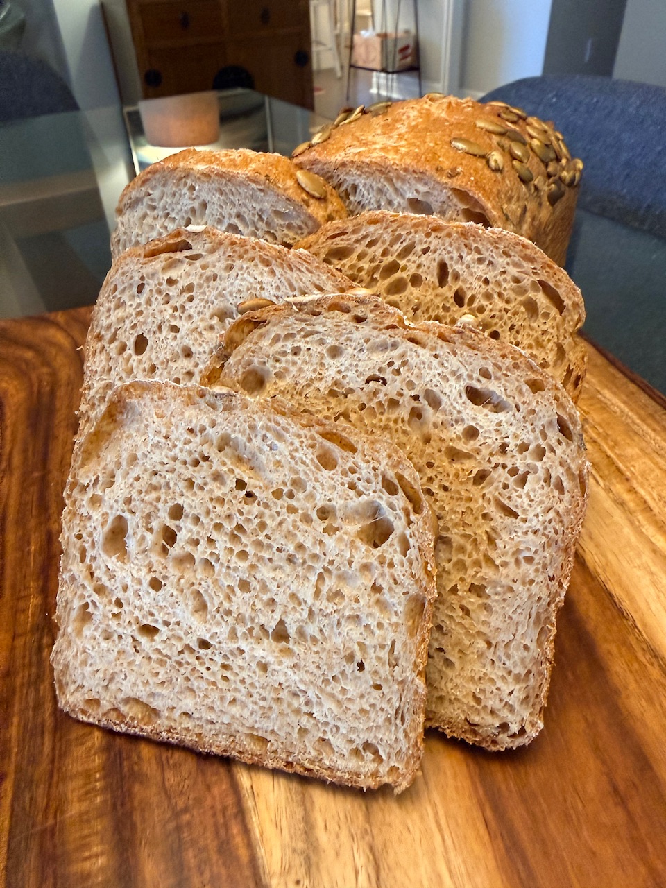 Thank you Ian. The addition of pumpkin definitely added to the texture of this loaf. I’m not mad at it that’s for sure.
