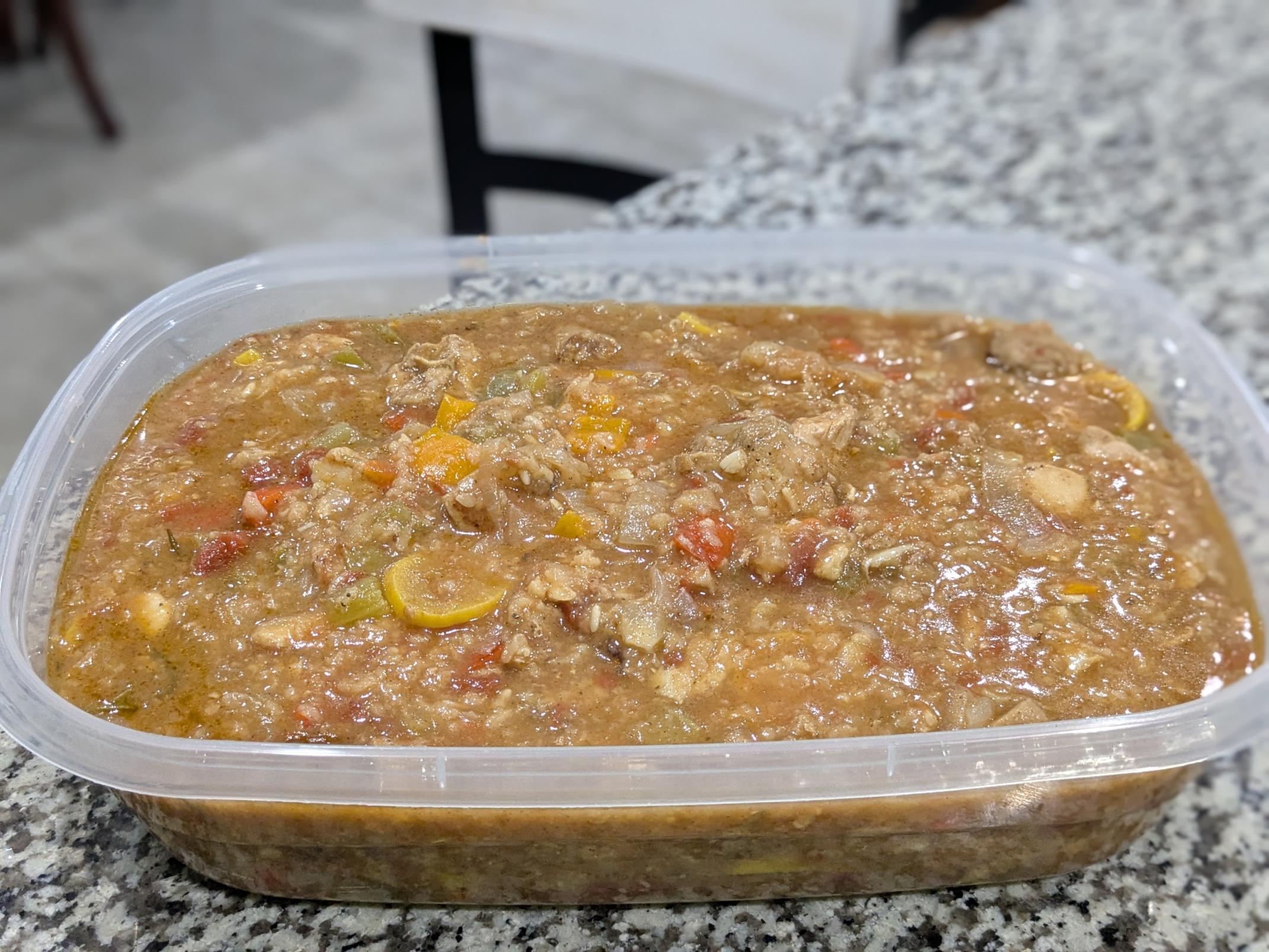 Today's ( mostly healthy) offering. Chicken & sausage gumbo. Omit the calorie and fat laden rue, in favor of ground sassafras as the thickener.