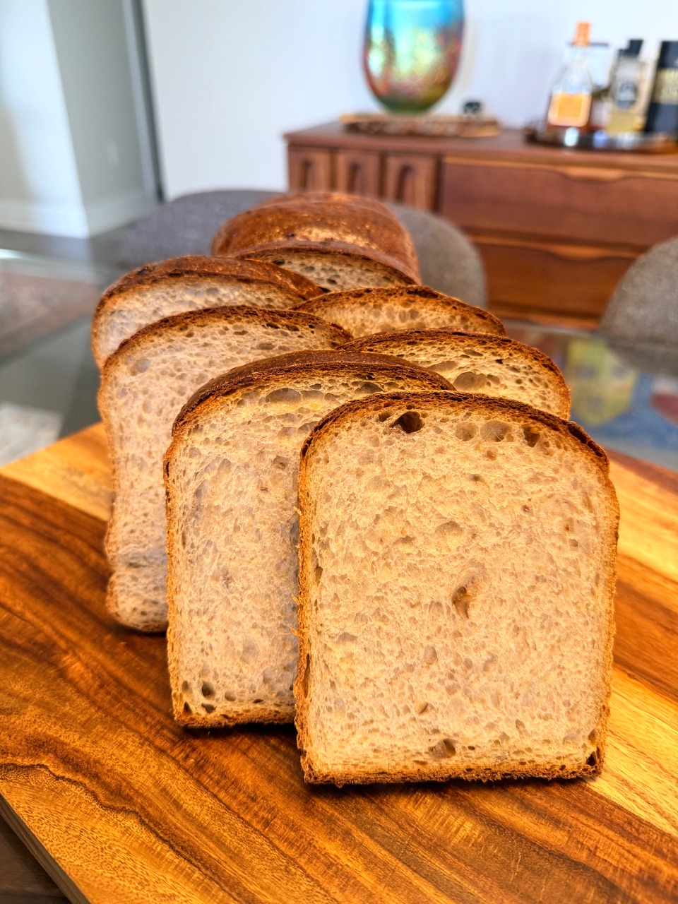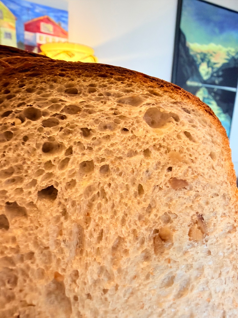 Here is the crumb of the sliced loaf. Despite there being almost 25% of the total weight of the dough in chestnuts, the flavour is still subtle. That being the said, the crumb is feathery soft and light. You can definitely taste the chestnuts and I’m super happy with this final bake of 2025.