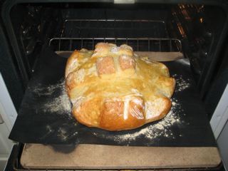 Here is my Boule baking on the aforementioned teflon baking sheet: