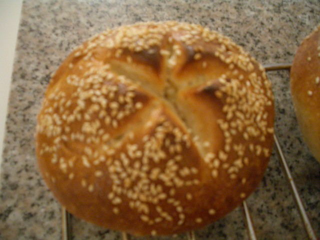 who, in spite of cooking all day (literally) yesterday at my daughter's house, couldn't wait to get home today after a two-hour drive and get her hands into some flour and yeast??? On the long drive home I envisioned kaiser rolls filled with leftover turkey, ham, dressing, and cranberry sauce. So guess what I have proofing? I am using my standby dinner roll recipe and just making them into kaiser-shaped buns- soft but crusty and substantial enough to stand up to a hearty filling. BTW, I wasn't sure that my home-made marshmallows would really be noticed on top of the sweet potato casserole, but they actually were! They melted more creamily and were by far more tasty than store-bought. Y'all should try them!