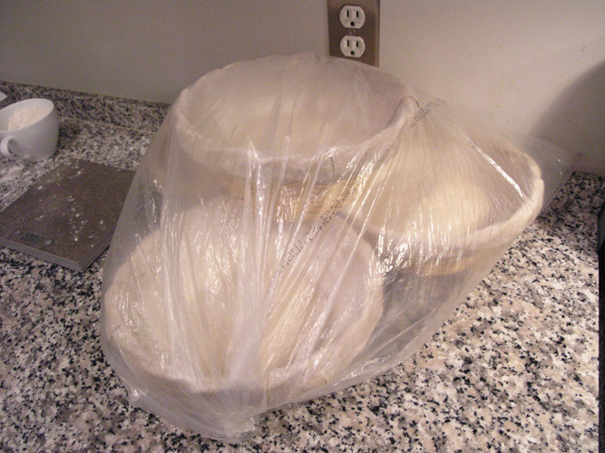 7:30pm - Final shape into boule, place in banneton for proofing, cover with plastic.
