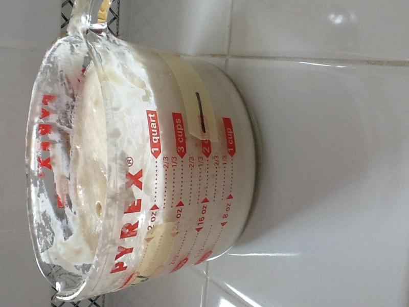 Not sure how to flip photo, but thought I'd share the pic of my starter as of noon today. All I did was leave it alone and give it a stir. It appears to be responding. I will try feeding out again tonight with some bread flour and see what happens. I'd love to bake with it on Wednesday. Thanks for the advice!