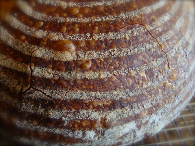 I had a single large boule of a 'Basic 100% sourdough'. The formula I used with some minor changes is from 'Northwest Sourdough's' bread site.