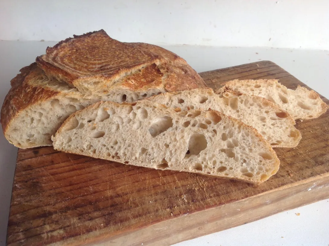 Just by way of clarification, see the loaf below. When this loaf was turned out of its banetton it immediately spread out to what looked lke a thick pizza about 2cm high. So at that stage it appeared as if all was hopeless. However, once in the oven it sprung up to the loaf you see. This is higher hydration than your loaf though.