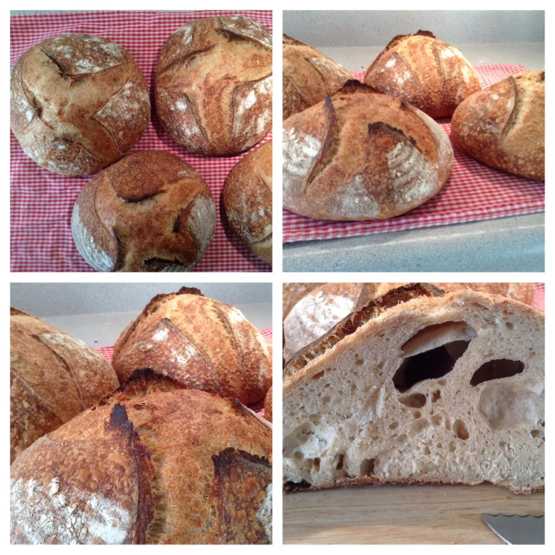 I think I could work a bit quicker and lighter if my board werent so crowded - shaping nearly 4kg of wet dough into 4 boules on a regular sized wooden board is tricky! Maybe I should buy a bigger board.