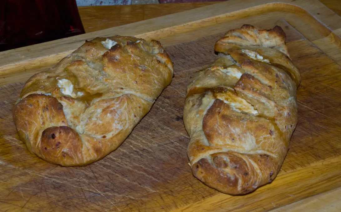 For the stuffing in the calzones I used the meatballs, fresh ricotta cheese, fresh mozzarella and a little Asiago.