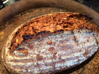 - Baking: With normal steam, 235C (450F) or 40-45 mins, turn the loaves half way through the bake. (I retarded the dough and took it out in the morning. I then let it rest at room temperature for about an hour. It popped up nicely. In the meantime, I preheated the oven for about an hour to heat up the baking stone.) (For this particular bake, I used my covered baker, preheated at 500 degrees, baking with lid on for 30 minutes; lid off at 435 convention for 10 minutes). If you make smaller loaves, watch carefully as this dough was a fast bake.