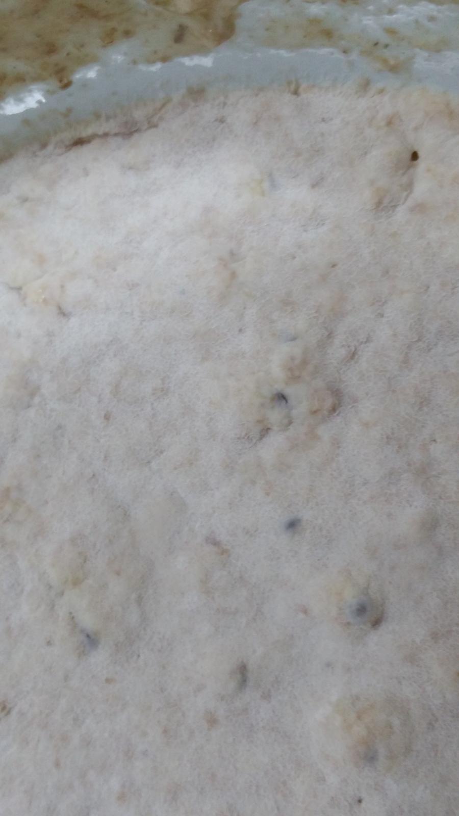When I looked closely, the white power looks like lots of commercial instant yeast, but smaller.