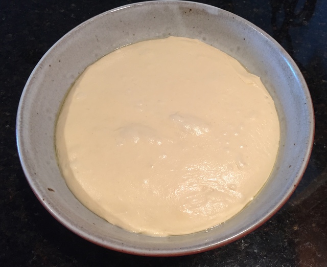 The dough after the 2nd set of 200 French Folds, and after the 5 hours of bulk rise at 80dF completed.