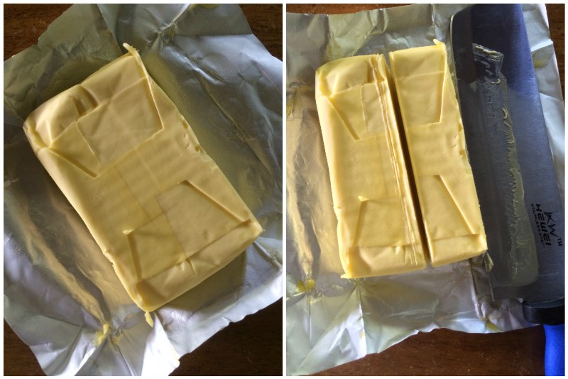 Most recipes use 250g butter for 500g of flour but you can see it's not exactly 250g so I just used a bit more than half to come up with hopefully the right ratio of the roll-in butter.