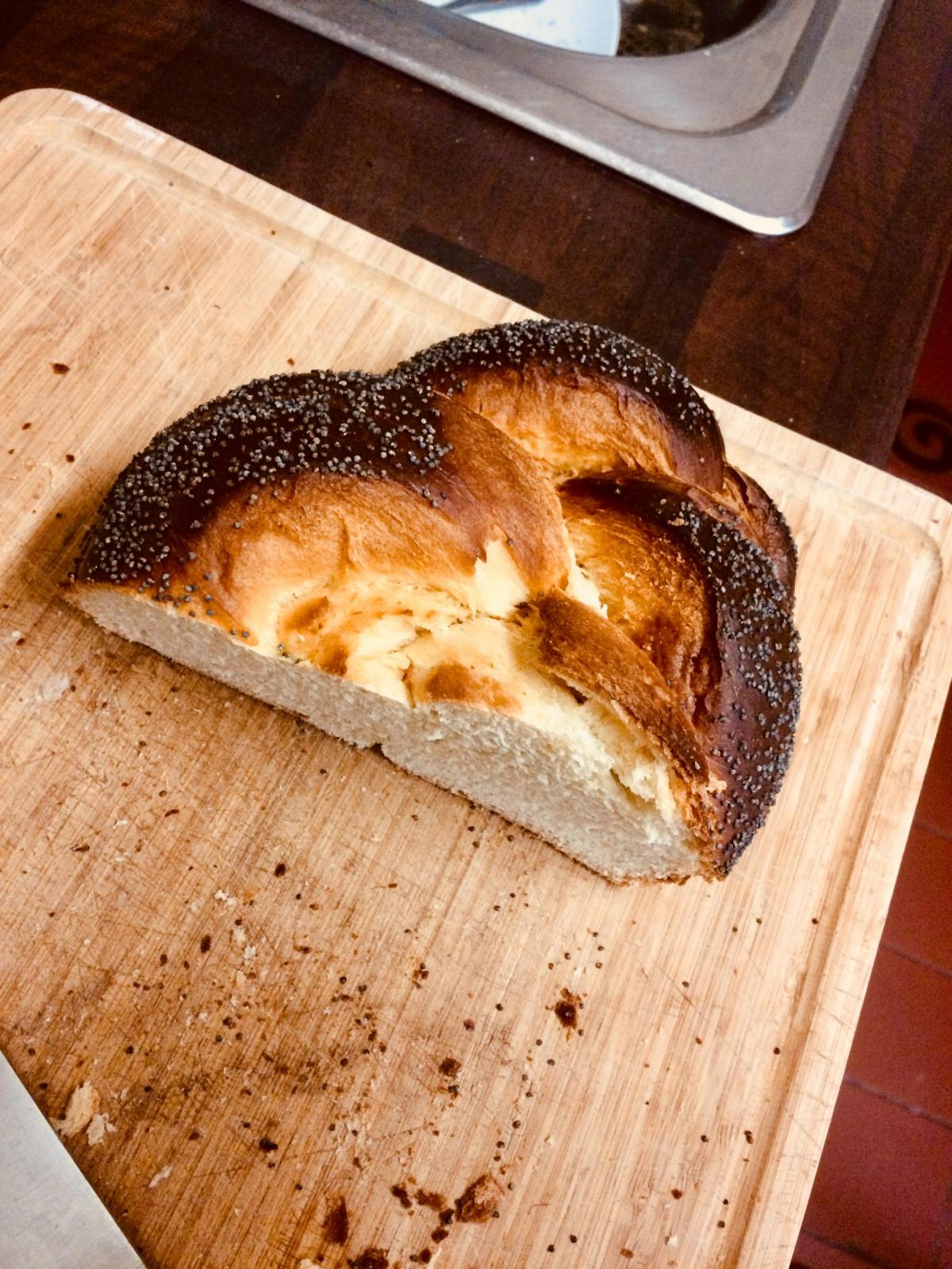 I think underproofed too: cold temperature combined with impatient family looking for bread after 3.5 hours of final proof ended up with challah in oven. I’ve never made one so was on unsure ground....here’s pic of half eaten one: