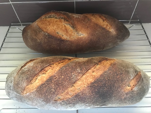 Anyway, the loaf was light of crust and the slices were soft in texture with a slight nutty taste on the palette.  Not to push the recycle envelope too far, I think a croque monsieur will be on the menu as the surviving loaf approaches old age!  Subjoined is a couple of not-so-good iPhone photos.  Next time I might try lifting the hydration a few beeps.