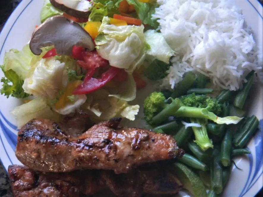 Miso Teriyaki Grilled Pork dinner and Lucy says nit to forget the salad to go with...any dinner or lunch.