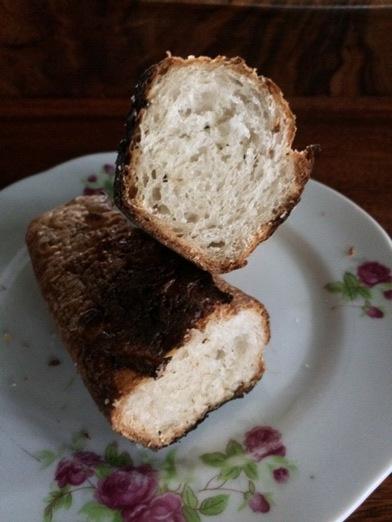 I proofed them for 1 hour. They doubled so quickly. I am not that confident in scoring dough so I mustered enough courage then scored confidently. In Vietnam, they only do a single long slash. I also tried the classic scoring. I struggled with making a straight single long slash and it did not open up so well. I think I did better with the classic one because it was easier because the blade has to travel shorter. I baked them in my clay pot over heated pebbles and had I shaped them any longer, they will not fit in my pot anymore! Average length was 8 inches or 20 centimeters.