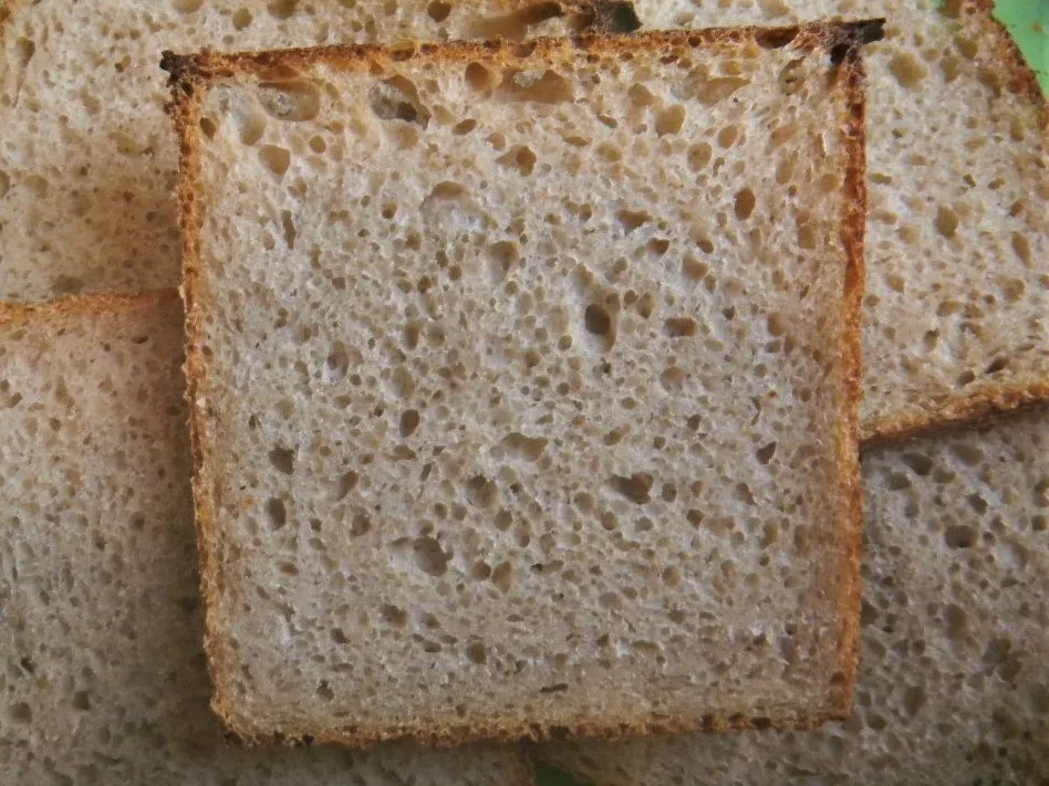 This is 4 whole grain Sourdough with all 13.33 % of the whole grains in the whole grain 100% hydration levain using 3.33% NMNF Rye starter seed. The whole grains are red and white wheat, oat and rye all in equal amounts. Half hour autolyse with 2% salt sprinkled on top with enough water to get the hydration up to 73% holding back 2% more water that is added in with the levain to get the salt mixed in easier. 86.67% Dough flour is half bread and half AP flour. 3 sets of Slap and folds of 125,,50 and 25 slap and 3 sets of stretch and folds from the compsss points all on 30 minute intervals. Then in the pan release sprayed Pullman it goes till it rises 90% and then into a 450 F oven for 20 minutes lid on and then 425 F for 16 minutes lid off removing it from the pan 8 minutes after the lid came off to get the sides and bottom brown.