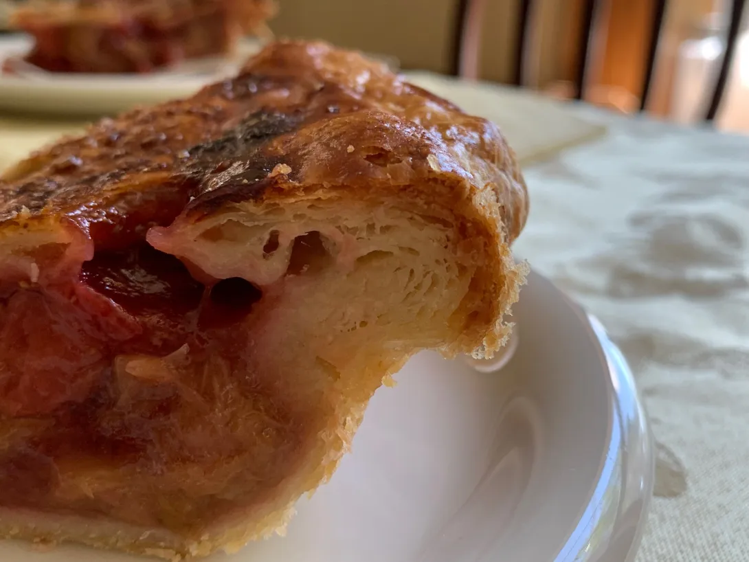 My photos don’t do the pastry justice, there were so many delicious layers of crispy flaky buttery goodness in this crust. Everyone comments that the crimped edge of the pie tasted like a crispy many layered croissant. I like the extra complexity that the orange added to this filling. Overall one of my best efforts.
