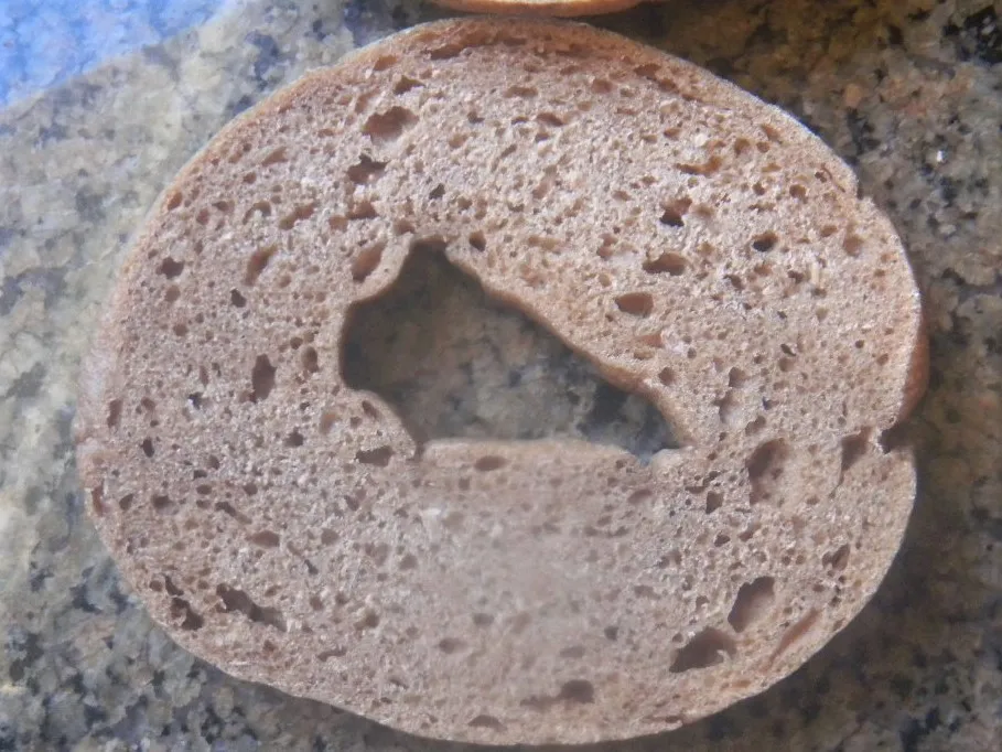 They were more than slightly, mega over-proofed and flattened but they sure smelled great! A couple of days later I really watched her to make sure this didn’t happen with the white ones. So, they came out looking a whole lot better, way mire like bagels even if they had no chance io tasting half as good as the pumpernickel ones.