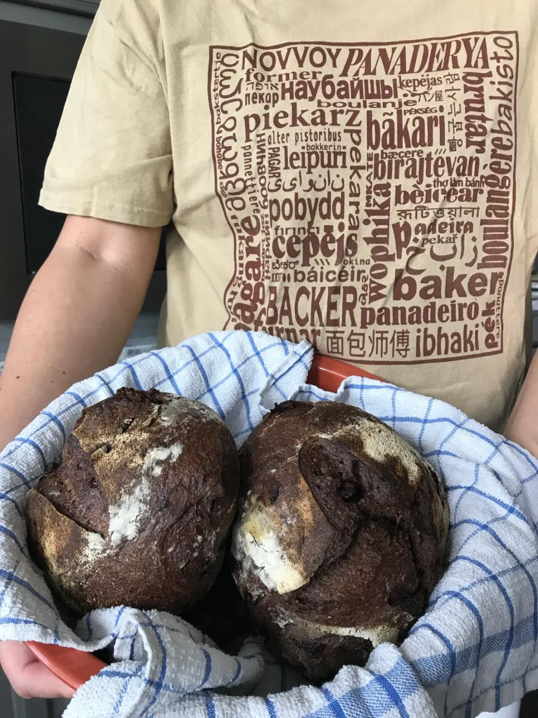 ...was a test one where i was trying out different percentages of the ingredients. i have it scribbled down but not formally typed up. in retrospect, i think i'm going to increase the hydration for the second go-round. i used: all-purpose flour, whole wheat flour, rye, starter, chocolate powder, honey, choco chips, dried cherries, kosher salt, water. i did have a problem with the chocolate burning on the outside so i think i'm going to break the chocolate into smaller pieces instead of having chips throughout the dough. i'm not using a cast iron pot so i'm looking for a good ratio flour/water where i can get a decent crumb but also a loaf that will hold its structure decently so that it will be taller. i don't know if it's possible to have a super open-crumb and also a taller, rounder loaf instead of a flatter one.