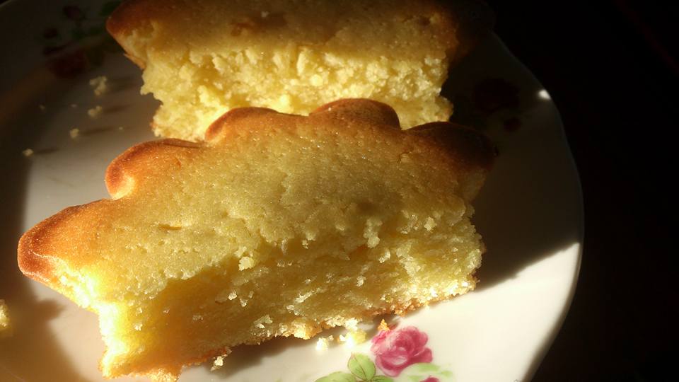 In addition to flour, milk, eggs, salt, sugar, and olive oil, I flavored it with a local orange. What pairing is more classic than olive oil and citrus, most magdalenas are flavored with lemon zest. Our local orange has an intense unique fragrance not even close to lime, lemon, or classic orange. Compared to orange, the aroma is more mabagsik (sorry, I can't think of direct translation, intense? fierce?); I once candied it and the peels were still extremely bitter after three times of blanching. Even just the green rind, without the pit, it is already bitter. The skin was also very thin that it is difficult to get only the green zest without the bitter white pith. With its intensity, I only needed a small amount to perfume the cake, just a quarter teaspoon.