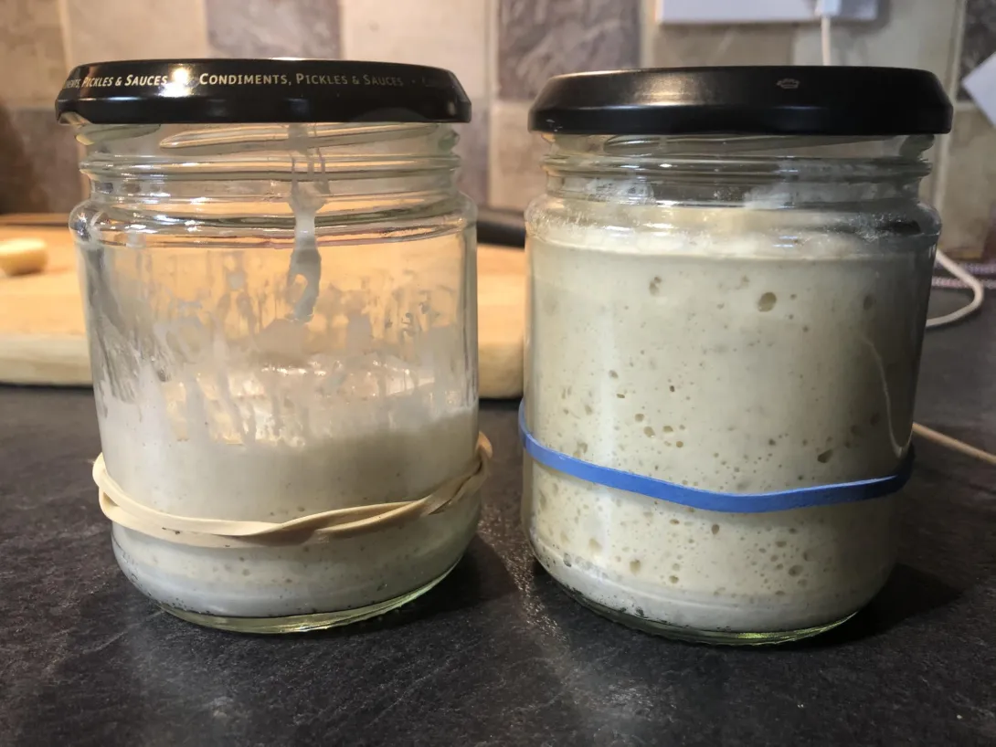 I’ve read today that lower hydration starters result in smaller holes in the baked loaf, but you’ll see from the photo that the holes in my lower hydration starter (right) are much bigger - does this translate to bigger holes in the baked loaf? Also, the photo was taken about 4-5 hours after feeding both, and as you can see the lower hydration starter was still going strong and had grown by more than half whilst the 100% one had started to drop already and never got much more than doubled in size. So is the new starter I have inadvertently created better and more active, or should I stick with the 100% hydration one until I’m a bit more experienced?
