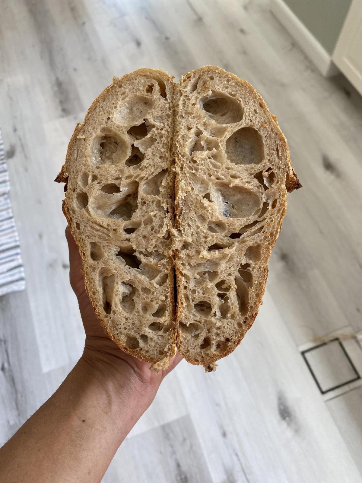 And the baked loaf looks nice. That's more oven spring than my 90% WW loaves.