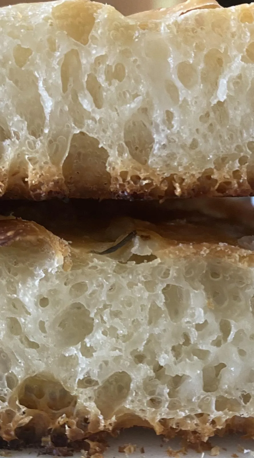 I just baked my first focaccia and I wanted to get some feedback. I liked the crust and flavor but was curious about the inside.