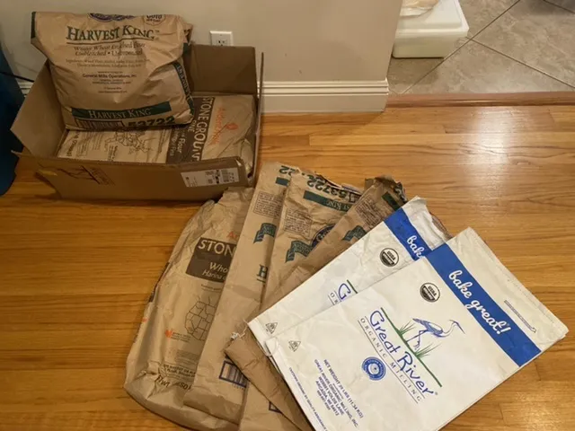 A bunch of 50 lb bags of bread and WW. Some 25 lb bags of rye. And lots of 5 lb bags of AP.