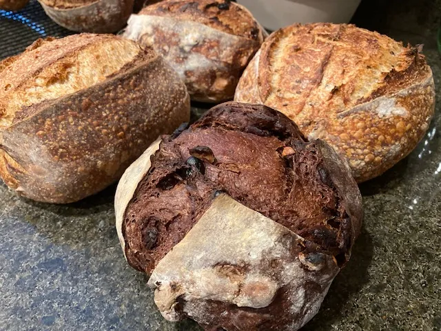 but after thinking over my comment I do regularly make a bread that contains raisins and one with cranberries and walnuts so if I don’t worry about those sugars why would I worry about the sugar in chocolate adversely affecting the bread.