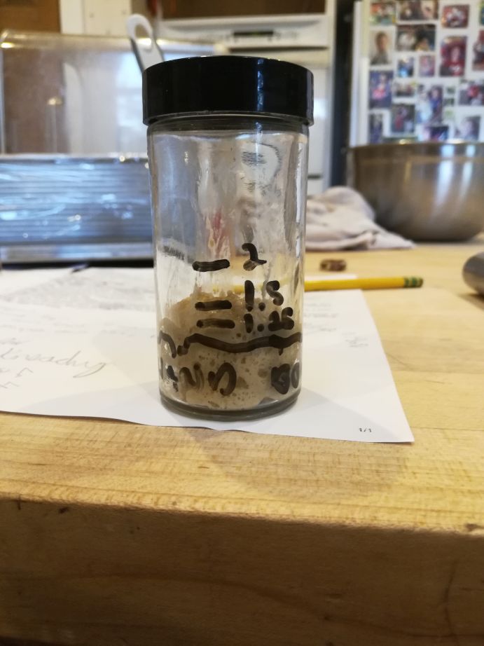 Nice looking loaf!  I like to use painter's tape on the aliquot jar since mine is plastic and marker might be hard to clean off.