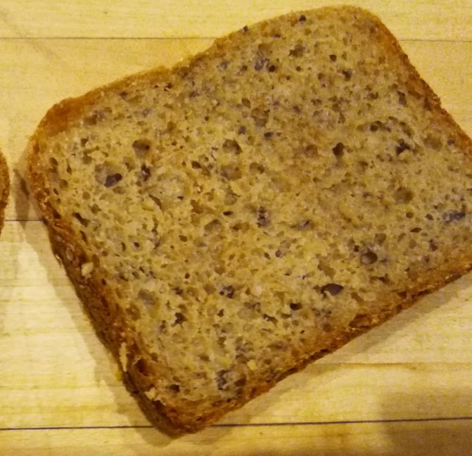 - The crumb was too gummy. I think this is probably due to too many starchy elements in the addins. I will try removing half of them (probably just remove all of the chia seeds).
