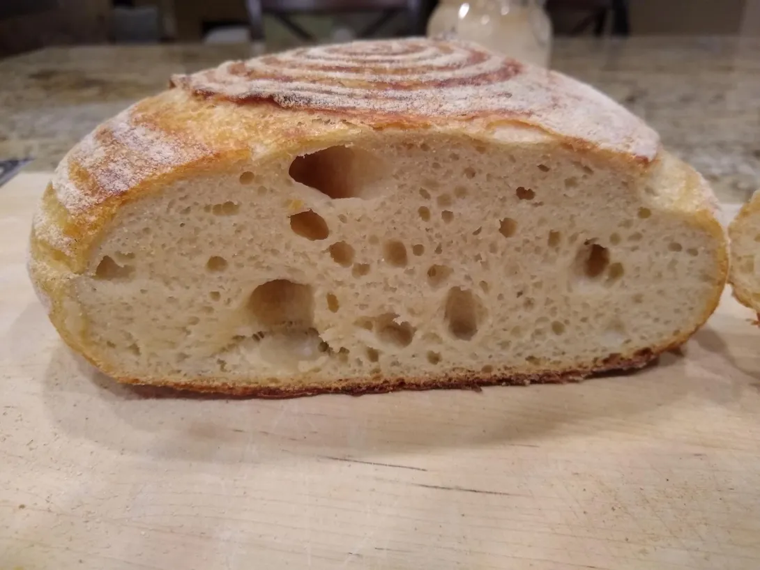 I usually store it in the oven with the oven light on in between turns and during the bulk ferment stage, but this time I chose to keep it outside (maybe around 68 F?) to see what would happen. I'm also worried that I may be degassing it too much during the shaping process. My first question is - is this overproofed or underproofed? I let it sit for almost four hours during the bulk ferment outside, but the poke test, when poked in the middle, showed that it was only a little better than underproofed. Any other ideas on what to try?