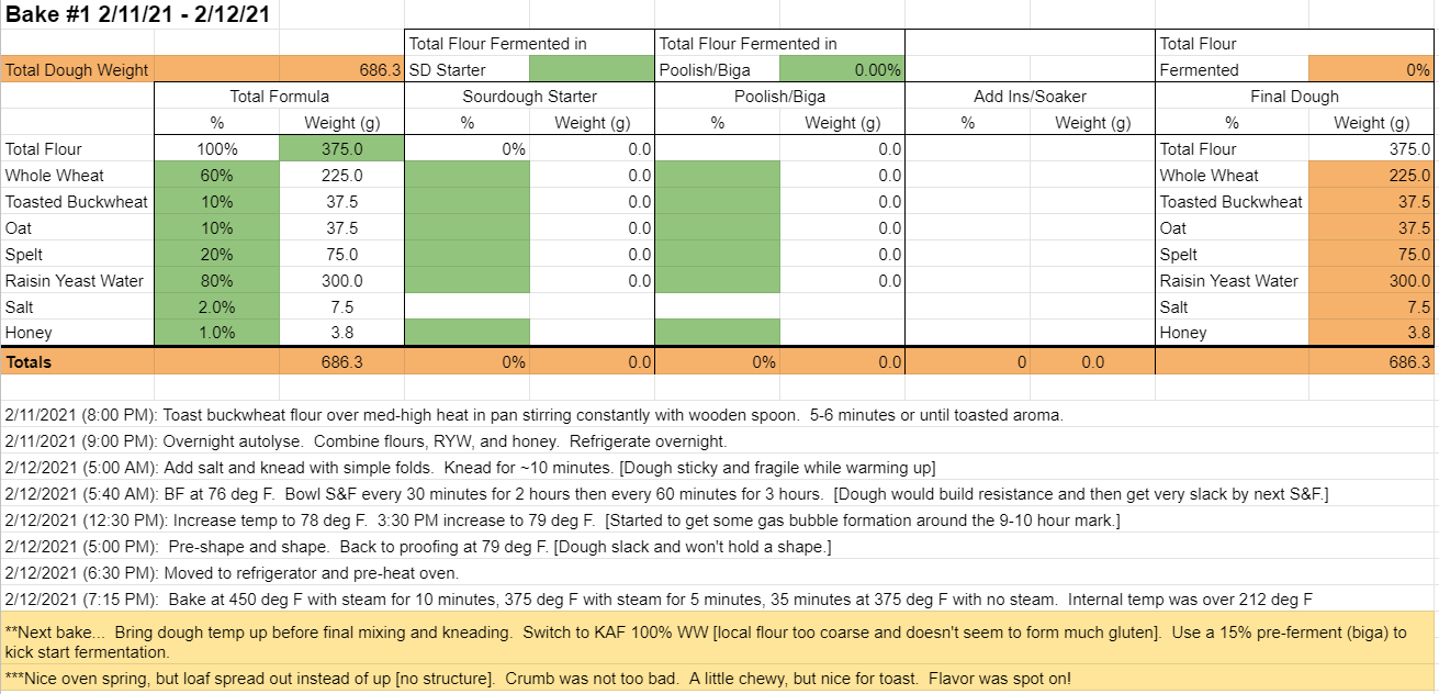 All that said, the flavor is exactly what I was going for. May stick with the flours for Take 2, or I may try adding the groats and oats as an inclusion. A few iterations to go before I settle in on a recipe...