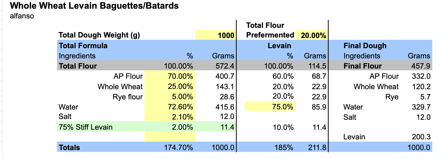 Looking to get the new gal off to a start, I found this WW Levain Baguette formula quietly sitting in my ever thickening looseleaf binder bursting with those compatriots I've made in the past.